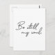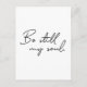 Modern manustypografi för ord "Var fortfarande min själ" på dessa minimalistiska vykort. Hitta uppmuntran i ord. Var fortfarande min själ, Gud vet hur du går.