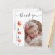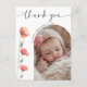 Uttryck tacksamhet till dem som gjorde din baby shower verkligt speciell med vårt vackert designade tackkort. Detta eleganta kort har en tidlös vit bakgrund som sätter scenen för ditt barns foto inramat i en delikat akvarellbåge prydd med livfulla röda blommor. Överst på bågen står ett hjärtligt "Tack" skrivet i ett sofistikerat modernt typsnitt som ger en touch av värme och personlig charm. Under fotot visas ditt barns namn i raffinerad, elegant bokstavsstil. Tryck på knappen för att anpassa kortet, du kommer att bli förtjust!