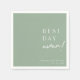 Fira din speciella dag med vår moderna skribentdag, bästa någonsin, Grönt Bröllop-servetter. Den här elegantens blöjor innehåller frasen "Bästa dag någonsin" som på ett utmärkt sätt kombinerar vit serif och modernt skript typsnitt och skapar ett tidlöst och sofistikerat utseende. Personlig med namn och datum i vit serif-typografi... ger de här blöjorna en unik och personlig beröring till din bröllop-deka. Bakgrundsdesignen för serensidans grönt kompletterar alla bröllop-teman och skapar de här blöjorna en perfekt till firande. Perfekt för mottagningar, cocktail-timmar eller någon del av din bröllopsdag. De här blöjorna kommer att imponera på dina gäster och lägga till en minnesvärd detalj till ditt evenemang. Beställ nu och gör din bästa dag ännu speciellare!