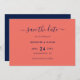 Komplettera din marinblåa och koralliska bröllopsfest med dessa minimalistiska, men ändå elegant marinblått och koralligt bröllop spara datum-kort med ett modernt typsnitt. Anpassa enkelt med onlinen om information om bröllop. Matchande objekt är tillgängliga.