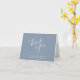 Tack vare det här bröllop-kortet i eleganten kan du skriva handskript i snyggt i vitt på en dammig blå bakgrund. Lägg till parets datum namn och bröllop i sans serif-teckensnitt.