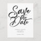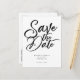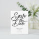 Grattisar på din förlovning! Tryck på gästerna med den här eleganten och spara datummallskortet. Den här designen har en svart och vit minimalistisk design med ett typsnitt av typskriptet i mitten som säger "spara datumet". Anpassa den här produkten genom att lägga till din egen bröllop-information.