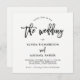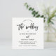 Den här moderna, svarta och vita bröllopsinbjudan innehåller trendigets skripttypografi och en enkel layout och snyggt.