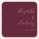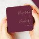Modern skript Burgundy Guld Bröllop Underlägg Papper Kvadrat