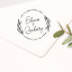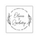 Stilfull rustik modern cirkulär gummistämpel med grönska i cirkelform med kurvlinjig skript och modern text.