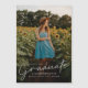 Denna moderna, eleganta och stilrena examensannonsering med foto har en överlagring för skript examen och anpassningsbart namn, skola och foto på framsidan. Baksidan är magnetisk. Ett bra sätt att visa upp din examen.