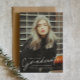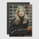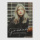 Denna moderna, eleganta och stilrena examensannonsering kombinerar en överlagring av en examenkandidat i skriptstil och möjlighet att anpassa namn, skola och foto på framsidan. Baksidan är en magnet. Ett bra sätt att visa upp din examenkandidat.