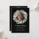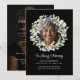 Anpassade eucalyptus-firande-avskeds-inbjudningar ger ett graciöst och hjärtligt sätt att hedra minnet av en nära och kära med elegans och skönhet. Denna tvåsidiga minnesinbjudan design har en mjuk akvarellkrans av eucalyptusblad och vita blommor som ramar in ett foto av den avlidne på framsidan, mot en djup svart bakgrund som frammanar tidlös värdighet och respekt. På baksidan stöder en hel fotobakgrund tydliga och välorganiserade evenemangsuppgifter, inklusive datum, tid, plats, svarsinformation och en valfri donationsnot. Kombinationen av delikat skript och modern serif-typografi ger en förfinad och personlig touch. Dessa personliga begravningsinbjudningar är idealiska för minnesstunder, firande av livsevenemang eller minnesstunder, och erbjuder ett sofistikerat sätt att inbjuda familj och vänner att delta i firandet av ett älskat liv. Den minimalistiska blomsterestetiken säkerställer att den passar sömlöst med både klassisk och modern minnesdekor, vilket skapar
