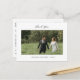 Visa din uppskattning med vårt moderna tackkort med foto för bröllop, ett personligt och stilfullt sätt att tacka dina gäster efter din bröllopsdag. Med en ren, modern "Tack" på framsidan visar detta eleganta bröllopstak kort upp ditt favoritfoto av paret, tillsammans med era namn och bröllopsdatum för en meningsfull, anpassad touch. Baksidan av kortet innehåller ett hjärtligt bröllopstak till era gäster, tillsammans med ett extra foto av paret, vilket skapar en vacker souvenir som de kommer att värdesätta. Perfekt för att tacka gäster för att de deltog i er bröllopsdag och för deras genomtänkta gåvor, kombinerar detta personliga fototackkort modern design, enkelhet och tidlös elegans. Idealiskt för par som söker anpassade bröllopstak, fotobröllopspapper eller modern bröllopspapper, är denna design perfekt för nygifta
