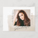 Det här moderna och eleganta examensmeddelandet för 2025 innehåller ett foto av högskole- eller universitetsutexaminerade. Trendigt svart skrivstil formar orden "graduate" och "twenty twenty-four" runt fotot av den utexaminerade. En chic beige färgstruktur är placerad bakom fotot. Du kan anpassa texten på baksidan av kortet för att göra detta till antingen ett enkelt examensmeddelande eller en inbjudan till examensfest. En stilren och enkel examensdesign för avgångsklassen 2024!