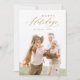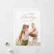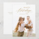 Modern minimalist glad jul-kortdesign med elegant trendig skript i guld färg, med personlig familjefoto, enkel och unik.