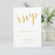 Modern Script Guld Bröllop OSA Card med titel i guld, modernt skriptteckensnitt med detaljer i guld moderna sans serif-teckensnitt på vit bakgrund. Obs! Folidinformationen simuleras i teckningen. Ingen faktisk folie kommer att användas vid skapar av denna produkt.