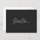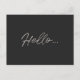 Minimalistiskt, enkelt och snyggt "Hej..."-citattecken med modernt handskript stil i grått silver på en av svart kalkbrädets stil bakgrund, ge en roligt, klassiskt tidslasser. Omvänt har lämnats tomt för ditt eget meddelande. Vilket bättre sätt att säga hej! En del av vår skriptdesignsamling.. ta en titt!