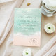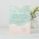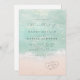 Vacker turkos abstrakt akvarell glänsande havsvåg och hjärtan i sanden strandbakgrund, toppad med stilfullt skript och elegant serif-teckensnitt, modern och enkel. Stor bröllopsinbjudan för nautiskt strandbröllop, tropiskt destinationbröllop, kustnära havstemat bröllop på sommaren.