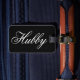 En modern roligt bagagetagg med stort skript i Hubby-text. Perfekt för nygifta och honungsmoonrar.