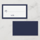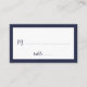 Modern Script Navy Blue Bröllop Place Card med tomt utrymme för gäst namn och bordsnummer på vit bakgrund med marin blå gräns.