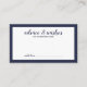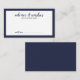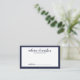 Modern Script Navy Blue Bröllop Advice och Önskemål Card med titel i marint blått modernt skriptteckensnitt med detaljer i marint blått modernt sans serif-teckensnitt på vit bakgrund med marin blå gräns.