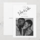 Ett modernt kort för att spara datumet för par som älskar ren design och djärva detaljer. Funktioner inkluderar ert förlovningsfoto i kombination med elegant handskriven skrift och staplade numeriska datumtypografi. Perfekt för minimalistiska, redaktionella eller tyst lyxiga bröllop. Fullt anpassningsbart med era namn och datum. Enkelt, stilrent och sofistikerat.