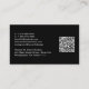 Modern professionell svart affärskort med ditt namn i ett vitt, fetstil i snyggten och din titel och kontaktinformation (t.ex. e-post, telefonnummer, fast namn och sänt adress) i ren, vit typografi. Ange webbplatsens URL-adress adress för att skapa en skannerbar QR-kod som är ansluten till webbplatsen, portföljen, medieprofilen för social eller någon annan plattform som visar ditt arbete, skapar det enkelt för kunder och kunder att utforska din expertis.