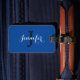 Modern skript, Royal Blue White Monogram Bagagebricka