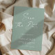 Modern Elegant skript sagegrön typografi bröllop spara datum tillkännagivande.