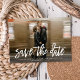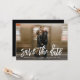 Det här moderna bröllop spara datum-meddelandet innehåller ett fullt-utfallsfoto och ett modernt skript "Spara datumet" i vitt. Kortets baksida är svart. ALLA färger är anpassade - färg, färg, till och med skriptet färg! Klicka bara på "Redigera med Design verktyg" i den nedrullningsbara menyn.