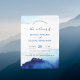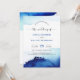 En elegant vattenfärgsblåblå bakgrund med modern skriptdesign är perfekt för en snyggt contemporary bröllop. (bröllop webbplats QR CODE finns på baksidan som tillval)