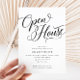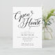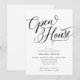 Modern skriptblomning, svart öppen husfest inbjudningar