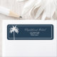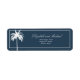 En blå och vit Handflatan Träd-elegant personliga returetiketter. En elegant handflatan träd ligger över namn. Informationen ändras lätt till din. Det moderna skriptet ändras lätt för egen anpassningsbar. Anpassningsbarnas etikett står i ensam, men den är en del av en svit av bröllop som är stationär vid Chessies Bra Designers.