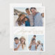 Modern minimalistisk glad helg-kort har elegant trendig-skript och typografi i guld färg, med personlig tre familjefoto, enkla och unika årstidshälsningskort.