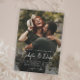 Den här moderna fotobröllopsinbjudningen för skript har enkel typ och handskrivet namn med ett fullt utfallsfoto på lodrät framtill. Baksidan har ett andra foto. Alla inslag är redigerbara, teckensnitt, foto och bakgrund färg. Klicka på knappen Redigera för att anpassa designen.