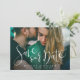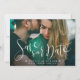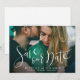 Modern sparar datumskriptet i färg, redigerbart vitt färg, med ett pars foto, enkla och elegant. Underbara fotot sparar datumkorten för vintage bröllop, formella bröllop och andra evenemang. Välj "Klicka för att anpassa ytterligare" i avsnittet "Anpassa den här mallen" för att justera fotots position och storlek.