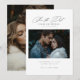 Fånga skönheten i kärlek med vårt moderna skript Photo Bröllop spara datum Inbjudan. Den här eleganten har två fotografier som andas och sparar datumkortet är perfekt för alla teman i bröllop.