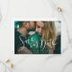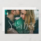 Modern sparar datumskriptet i färg, redigerbart vitt färg, med ett pars foto, enkla och elegant. Underbara fotot sparar datumkorten för vintage bröllop, formella bröllop och andra evenemang. Välj "Klicka för att anpassa ytterligare" i avsnittet "Anpassa den här mallen" för att justera fotots position och storlek.