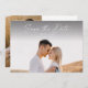 Modern Bröllop spara datum-fotokort för skript. Baksidan innehåller ett andra foto med ytterligare information. Klicka på redigeringsknappen om du vill anpassa designen med dina foton och med information om bröllop.