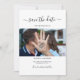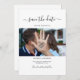 Modern Spara datum meddelande-fotokort för skript. Lägg till namn och foto genom att klicka på knappen "Anpassa". Spara datumkort för att informera vänner och familj om ditt kommande bröllop