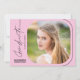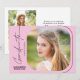 Den här moderna manusbjudan till studentfest av skript innehåller handskriven stil-text och ett fyrkantigt foto med rundade hörn på ljus rosa bakgrund. På baksidan finns ett andra foto- och anpassningsbar-lodrät som du kan använda för att lägga till information om din gruppinbjudan.