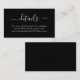Minimalt visitkort med ett huvud i skriptkalligrafi och information eller meddelande till gäster i modern typografi. Det här är den svarta versionen.