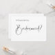 Detta minimalistiska skript Bridesmaid Frieri kort är perfektens sätt att fira din möhippa i stil. Har elegant och modern typografi. Du kan anpassa den här designen genom att klicka på "Anpassa den här mallen" eller om du vill ändra teckensnittet, bakgrunden eller inslagen på ett annat sätt kan du klicka på "Redigera med Design Verktyg".