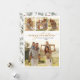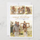 Elegant Vinter Foliage Modern Calligraphy Script 4 Photo Collage julkort. Detta festiva, minimalistiska multifotochristmas-kort har söt fyra (4) fotokollage, en "God jul" hälsning-text som är skriven i en kursiv handskriven teckenstil i svan i guld och vitt. På den omvända vattenfärgen vinter botaniskt grönt löv, eukalyptus löv, bär, gräs nål och grenar. Den här festliga Anpassningsbarna Fotojulkort är ett underbart sätt att påminna de kära om att du tänker på dem den här vinterJulhelgen.