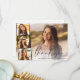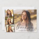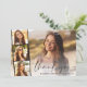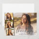 Modern studenten tackar dig för att du har ett kort med student-fotot överlagrad med tre mindre fyrkantiga foton, "tack" i ett skript för snyggt och deras namn, skolår och klassår i enkel typografi. Anpassa ett tackmeddelande till student och namn i ett namnteckning skript.