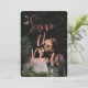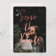 Fråga dina vänner och din familj till sparan om ditt kommande bröllop-datum med det här moderna fotot och fotofotofotot av snyggt spara datumet då inbjudningar med penselskripttypografi finns i faux ro guld foil stil och anpassade text.