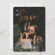 Fråga dina vänner och din familj spara om ditt kommande bröllop-datum med det här moderna fotot och fotofotofotot av snyggt spara datuminbjudningarna med penselskripttypografi i faux kopparfolie stil och anpassade.