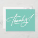Modern handskriven Tack-vykort i turkos. Perfekt för Bröllop, födelsedagar, jul, duschar eller något annat tillfälle. Om det behövs väljer du ett annat färg eller lägger till en egen utskriven text, adress eller namn på fliken Anpassa den. Du kan även använda vycitera vykort från färg.