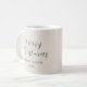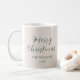 Den här snyggten är minimalistisk, modern, mugg för jultomasfunktioner, elegant ett modernt kalligrafiskript mörk grönt med krämbeige bakgrund.