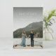 Foto Spara datum meddelande-kort med enkel, modern text. Innehåller en flyttbar övertoning för att få den vita texten att framträda.