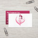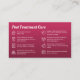 Denna pulserande och kraftfulla utformning av affärskortet är designad för att fånga uppmärksamheten och tillhandahålla nödvändiga instruktioner för efterbehandling. Framsidan visar en känslig och feminin silhuett av en kvinna, omgiven av rosa blommigt inslag, som symboliserar skönhet, nåd och tillit. Den här utformningen tilltalar en bred publik som söker kroppsskulpteringstjänster. Kortets baksida har en fetstilt bakgrund som skapar en kontrasteffekt som är påfallande för rosan. Uppföljningsanvisningarna presenteras på ett klart och koncist sätt och skapar det lätt för kunderna att följa dem. Varje instruktion åtföljs av en lämplig ikon som ytterligare förbättrar läsbarheten och förlovningen.
