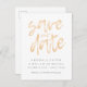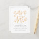 Denna moderna och slanka rosa guld-spara-datum-postkort är perfekt för alla teman eller färgpaletter! Det vackra handskrivna skriptet är klassiskt och modernt och den rosa guld-färgen är på modet. Denna moderna spara-datum är säker på att imponera på dina gäster!
