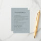 The Aesthetic: Provide your guests with essential information in a cool, sophisticated style with this modern slate enclosure card. This "information hub" utilizes a bold, architectural layout and our signature black Dongle typography to organize your wedding specifics into clean, sophisticated blocks. The muted slate background acts as a gallery-style canvas, ensuring your details are as beautiful as they are functional. Industrial Clarity & Design: This card is engineered for maximum organization. We’ve pre-set the information into three distinct sections: Accommodations, Reception, and Wedding Website. To maintain the "industrial-chic" hierarchy, we recommend entering your details in all caps for the first two sections; then, use lowercase for your wedding website to create a visual contrast that helps the URL stand out. The Branded Monogram: This fully customizable template features a sophisticated "L & G" couple's monogram on the back, serving as a cool, architectural signature for your suite. This designer touch ensures your stationery looks cohesive and professional from every angle. Personalization & Quality: Easily update each block while maintaining the perfectly balanced editorial grid. For a premium, non-reflective finish that enhances the cool tones of the design, I highly recommend our Matte paper stock—its heavy-weight, high-quality feel is the perfect match for the "Signature Palette" aesthetic. A Designer’s Pro-Tip: This enclosure card is designed to sit perfectly behind your invitation and RSVP card. By keeping your secondary details on this dedicated slate card, you allow your main invitation to remain a clean work of art while adding a professional layer of color to your suite.