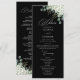 Vägleda dina gäster genom din speciella dag med vårt moderna bröllopsprogram med grönska och smaragd. Med en fantastisk akvarelldesign med eucalyptusblad och ömtåliga jasminblommor kompletterar detta eleganta program perfekt ett bröllopstema med grönska eller akvarell. Med en ren och modern layout ger det ett stilfullt sätt att dela med sig av detaljer för ceremonin, händelseförloppet och speciella noteringar, och säkerställer att dina gäster känner sig inkluderade i varje ögonblick.